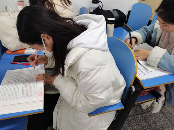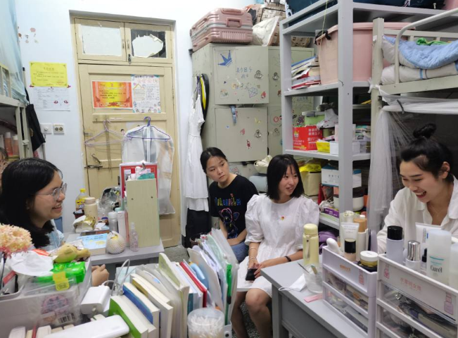 “快期末了,这一门专业课要好好复习,这几个章节是重点内容……”“‘互联网+’项目申报书一定要反复打磨……。”这是6月15日,员工党员李婧、朱芳在结对宿舍清美楼2039开展员工支部察民情解民忧暖民心实践活动时的场景。