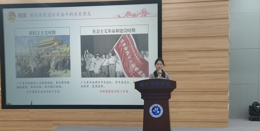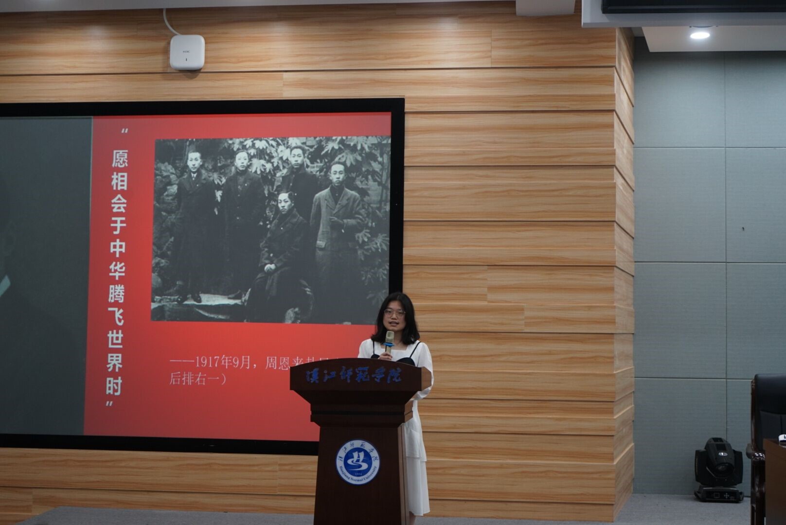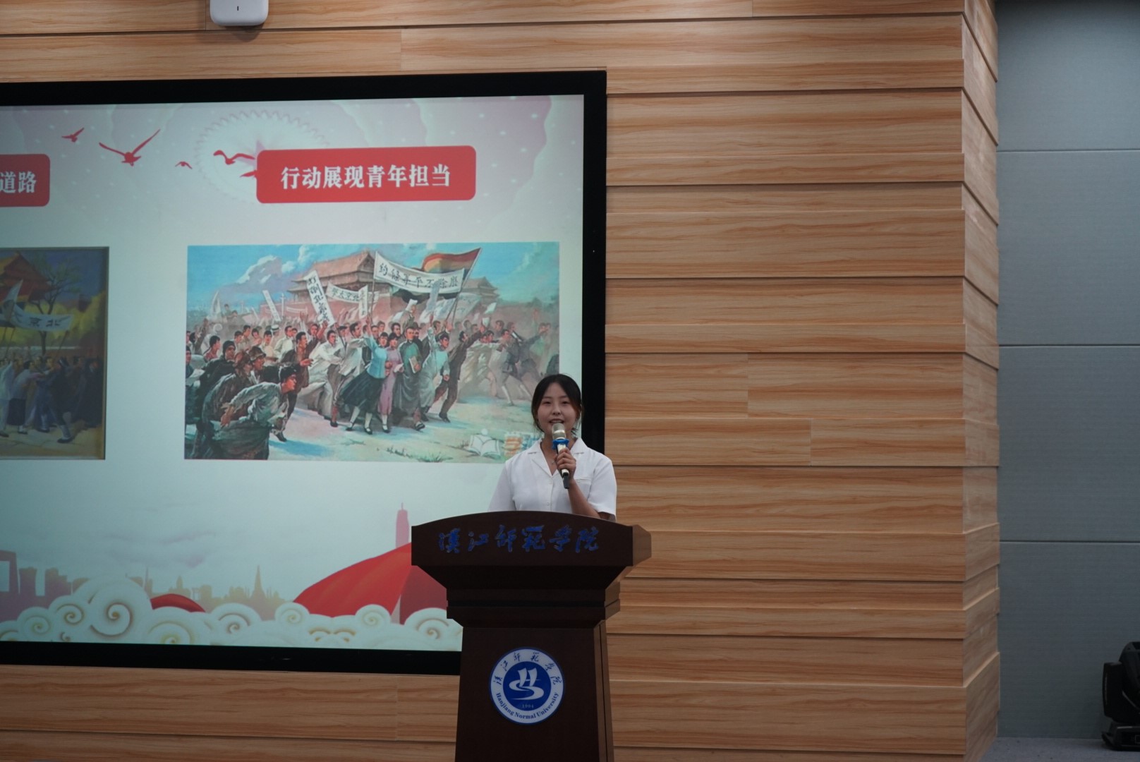 思政21级董倩同学讲述了习近平先后递交10份入党申请书的入党历程,号召同学们做树立正确理想、坚定信念并为之奋斗的有志青年。思政20级同学徐随念分享了马克思的经典文献《关于费尔巴哈的提纲》,呼吁广大青年深入实践,促进社会主义伟大事业的蓬勃发展。思政20级余鸽鸽同学讲述了中国革命青年的楷模恽代英的故事,展现共青团为中国革命胜利贡献的青春,建立的重要功勋。思政21级刘威聚焦习近平生态文明思想,通过形象的“水龙头”的PPT动画科普了“双碳”理念。