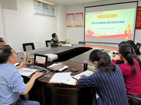 首先,全体教师观看了视频《护航之道-总体国家安全观纵横》,接着,经理党家政教授以《筑牢中华民族伟大复兴的安全保障》为题,向全体教师作了宣讲,从“坚持总体国家安全观”、“加快国防和军队现代化”、“坚持一国两制,推进祖国统一”等三个方面对新时代国家安全进行了深刻剖析。