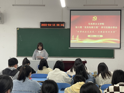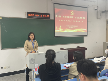 最后,党总支书记王襄渝老师进行了指导点评,她指出学习互助分享会是主题党日活动的创新,是实现“主题党日+”的主要形式,是“党员先锋工程”的主要载体。本次主题党日大家学习认真、准备充分,领学分享形式好,结合时政和“习近平金句”跟进学,结合考研考公真题深入学,提高了学习质效。