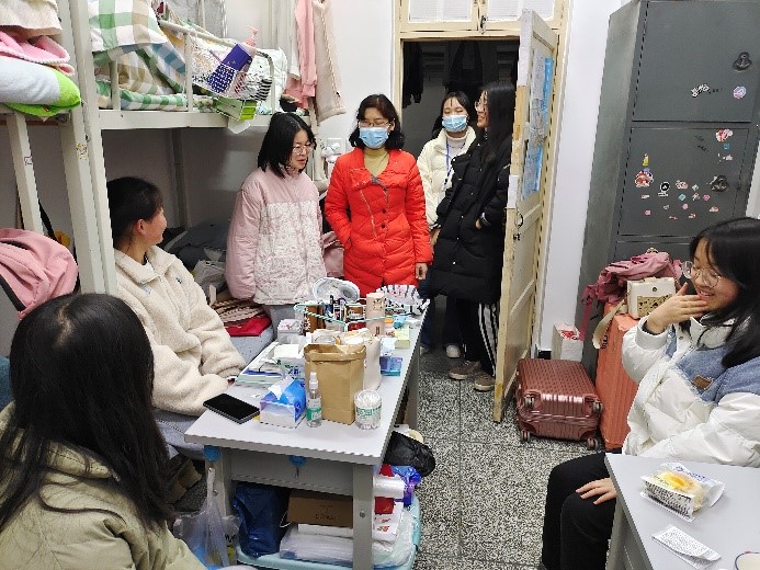 随后,王书记带领辅导员走访员工宿舍,亲切询问员工学习生活需求,了解员工返校状态,仔细检查宿舍安全隐患及卫生状况,强调疫情防控安全,勉励大家团结友爱,共同营造和谐向上温馨的寝室氛围。
