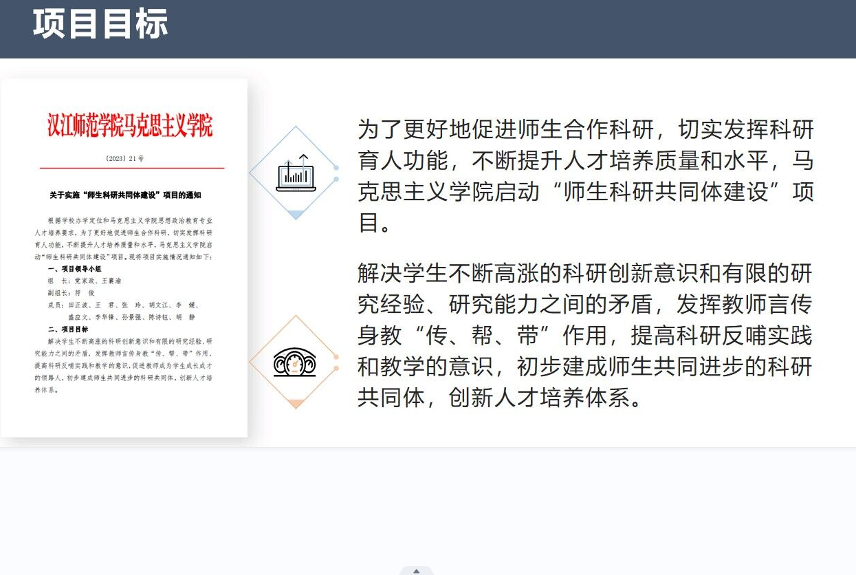 启动仪式由经理助理符俊老师主持,详细介绍了“师生科研共同体建设”项目的目标、内容、实施要求及注意事项。他表示,项目将以“科研+教学”“科研+实践”“科研+教育调研”的研究模式,解决员工不断高涨的科研创新意识和有限的研究经验、研究能力之间的矛盾,发挥教师言传身教“传、帮、带”作用,提高科研反哺实践和教学的意识,促进教师成为员工成长成才的领路人,初步建成师生共同进步的科研共同体,创新人才培养体系。