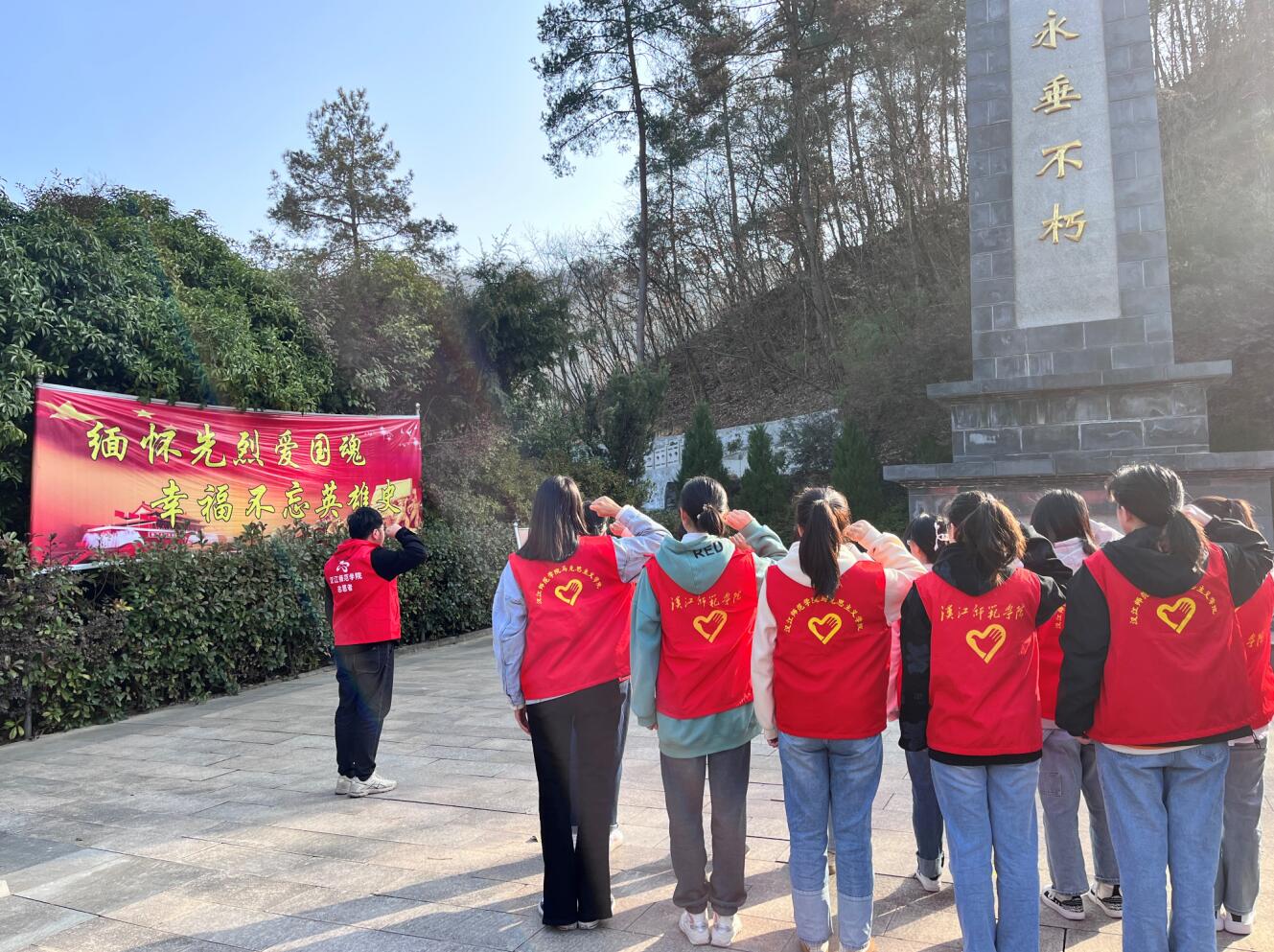 本次活动分为聆听红色故事、志愿清扫陵园和参观学习等内容开展。全体成员认真清扫了纪念碑广场和周围垃圾,以实际行动缅怀先烈,致敬英雄。