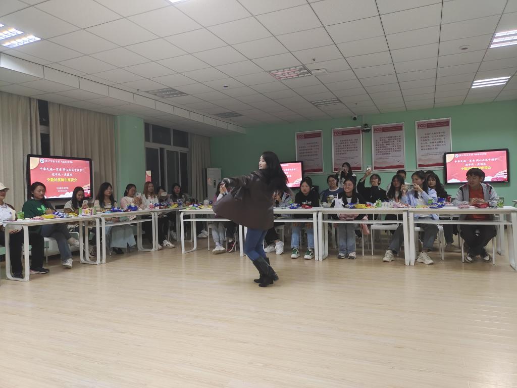 随后,各民族员工相继登台,展现才艺。湖北民歌《六口茶》《龙船调》等节目轮番上演,藏族员工益西志玛、远登拉姆带来的民族舞蹈更是将活动气氛推向高潮,同学们用歌声和舞蹈表达出对中华民族一家亲的美好祝愿。