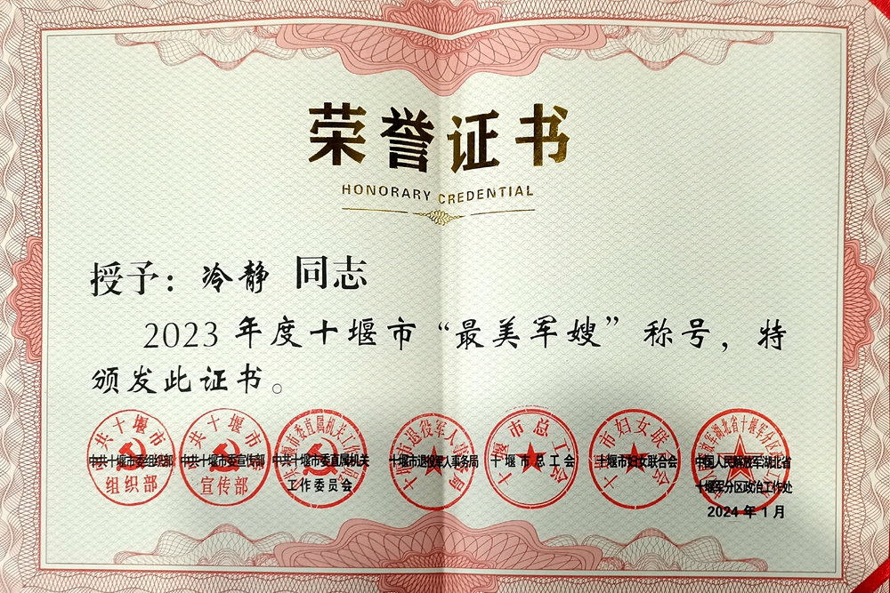 1月23日下午,全国退役军人事务员新职业第二批试点湖北启动仪式暨十堰市2023年度五类最美人物发布会在红松剧场举行。活动发布了十堰2023年度五类最美人物名单,公司教师冷静榜上有名,获评“最美军嫂”荣誉称号。