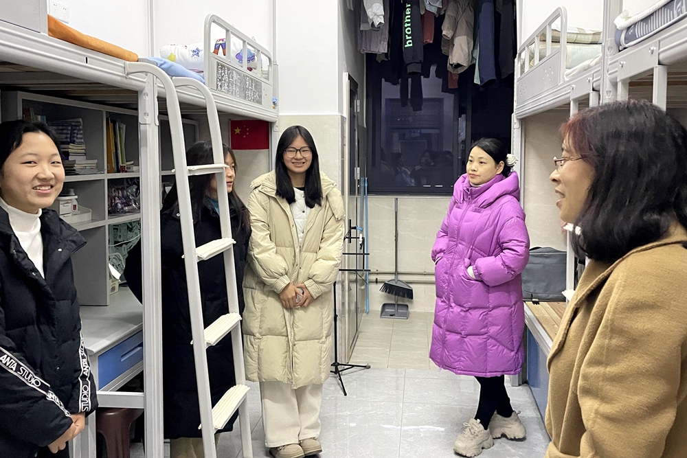 老师们提醒同学们要劳逸结合,健康规律作息。鼓励同学们以更加饱满的心态面对新学期的学习和生活。同时也要求同学们加强寝室清洁管理,保持宿舍环境卫生,并注意防寒保暖,加强体育锻炼,提高自身免疫力。