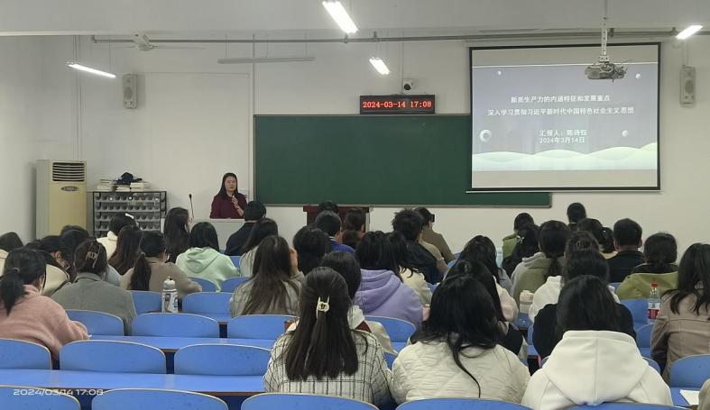 陈诗钰以“新质生产力的内涵特征和发展重点,深入学习贯彻习近平新时代中国特色社会主义思想”为题,为全体党员师生上了一堂精彩微课。