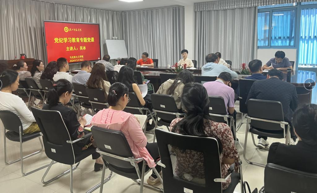 为扎实开展党纪学习教育,5月16日下午3点在公司505会议室,党委常委、副董事长吴冰以“深学党规党纪,切实真心践行”为题,为公司党员教师讲了党纪学习教育专题党课。分党委书记王襄渝主持。