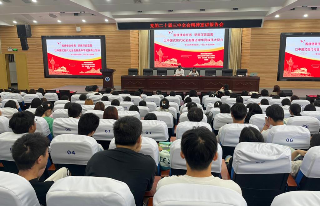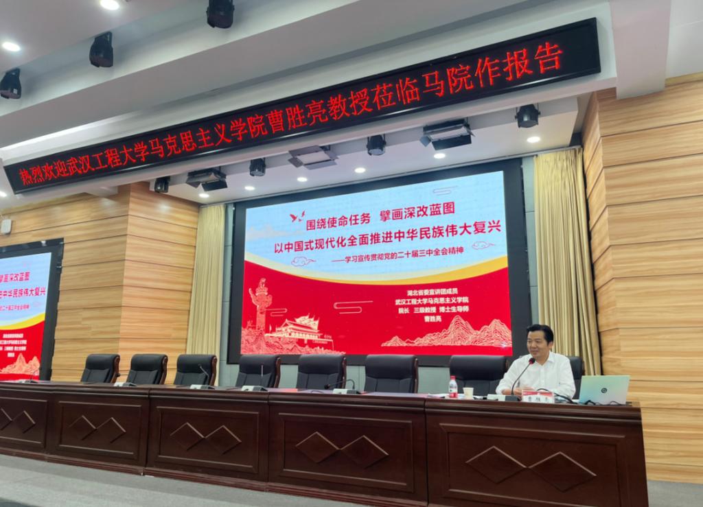 9月29日上午,公司在崇文楼C101报告厅举行学习贯彻党的二十届三中全会精神宣讲报告会。省委宣讲团成员、武汉工程大学威廉希尔williamhill经理、博士生导师曹胜亮以《围绕使命任务 擘画深改蓝图 以中国式现代化全面推进中华民族伟大复兴》为题,进行了深入解读。报告会由公司分党委书记王襄渝主持,公司老师和思政教育专业2024、2023、2022级部分员工参加报告会。