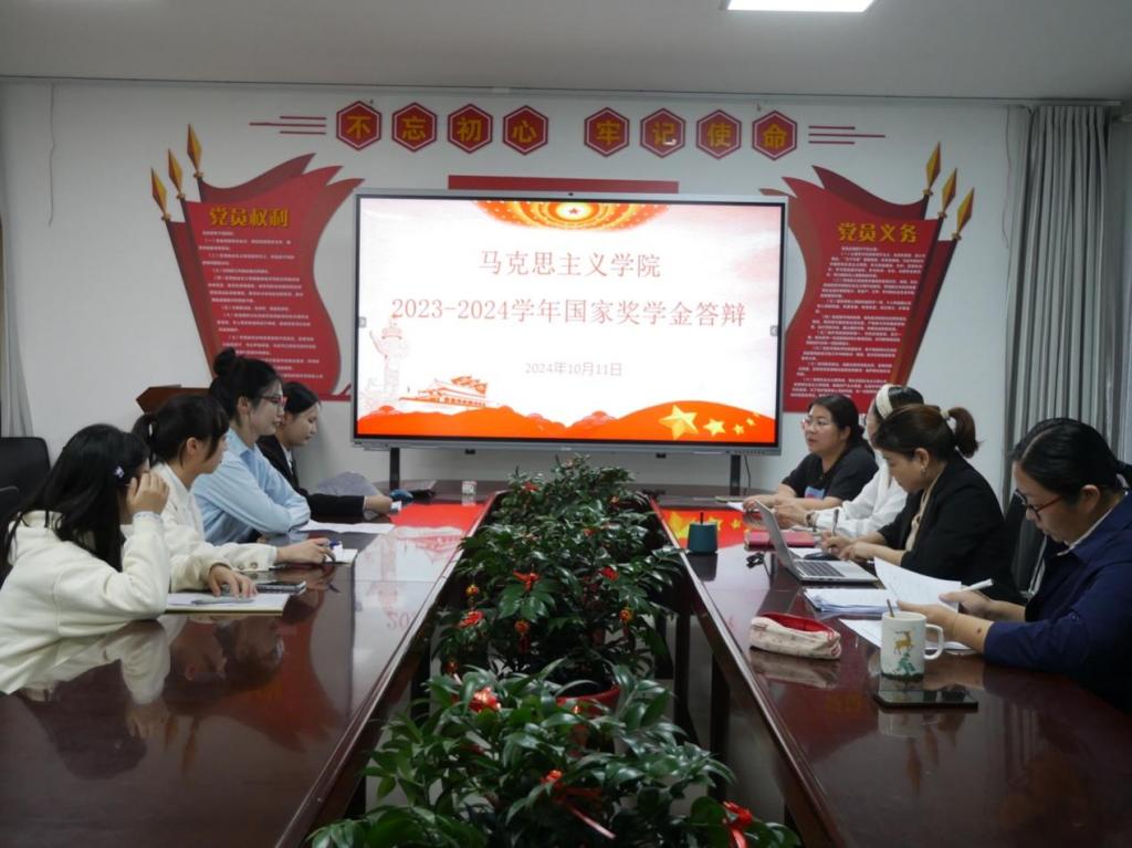 为充分发挥优秀员工榜样引领作用、保证国家奖学金评选工作公平、公正、公开的原则。10月11日晚,2023-2024学年国家奖学金评选答辩会在启明楼505举行。威廉希尔williamhill副经理王君、分党委副书记张玲、分团委负责人李宝、辅导员李朦参会并担任评委。