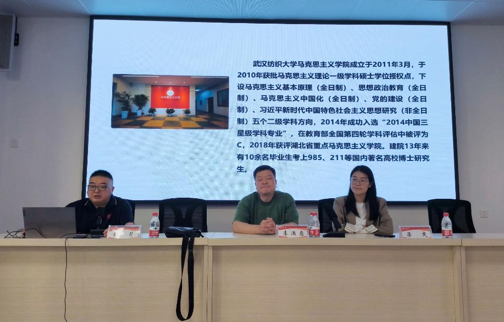 10月18日下午,武汉纺织大学于公司明理楼C203举办了一场别开生面的2025年硕士研究生宣讲会,公司分党委书记王襄渝、全体大三同学以及部分大四同学参加。此次宣讲会旨在帮助同学们更好地了解武汉纺织大学的办学特色、学科优势以及研究生教育的发展方向,为毕业班同学提供就业指导。