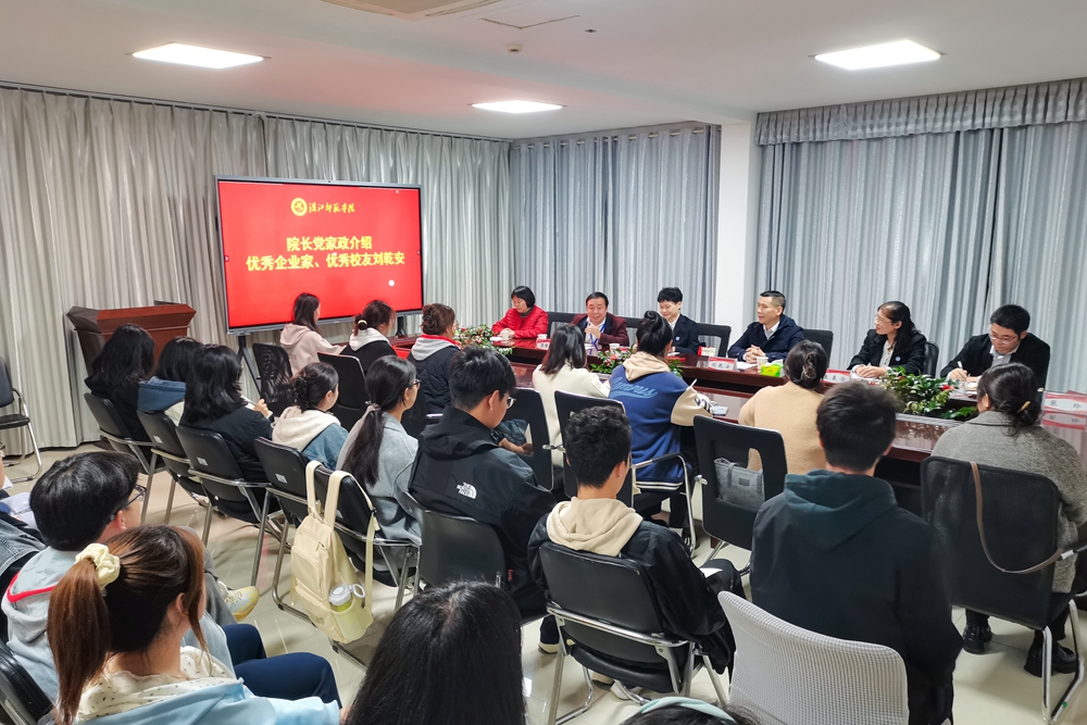 优秀员工刘乾安为为与会师生讲授了以《我的创业故事》为题的讲座。他结合自己的创业经历,分享职业生涯经历和心路历程,深入剖析了当前就业市场的最新动态和未来发展趋势,为同学们提供了宝贵的就业创业指导和建议。
